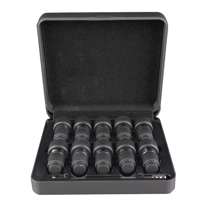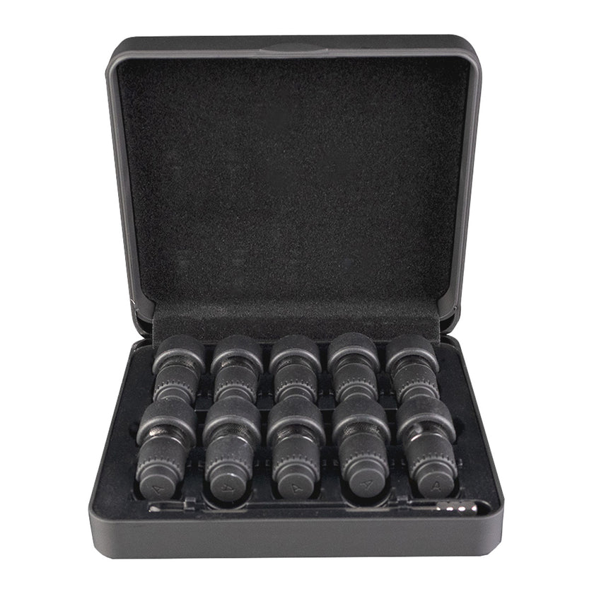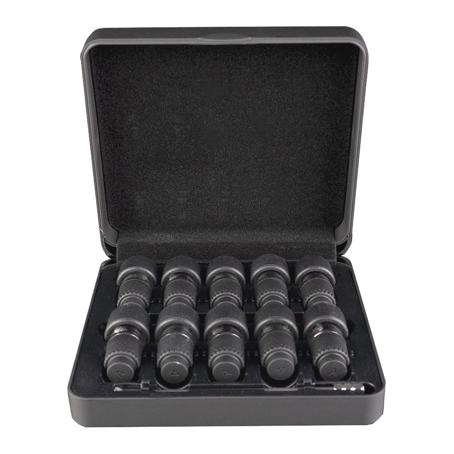 Prepack up to 10 sessions and hit the road with the Pre-Load and Go Case for the Arizer Go SRT vaporizer. This set comes with 10 Go Shell dosing capsules, a travel case to hold all 10, and a dedicated slot for a stir tool.