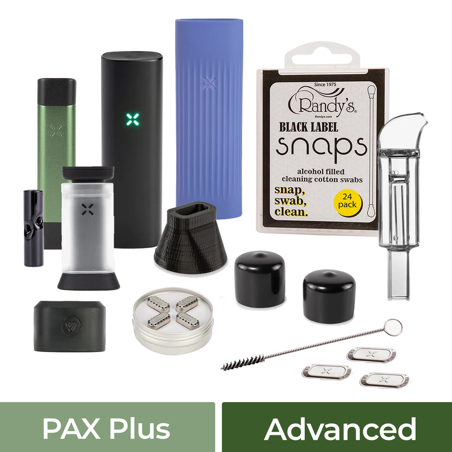 This kit includes the PAX Plus vaporizer, PAX glass adapter, glass accessories, and much more.
