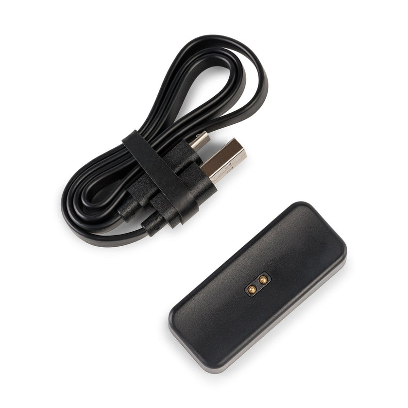 This charging dock is compatible with both the PAX 2 and PAX 3 vaporizers. It has contacts in the center that line up with the PAX, and magnets that help guide it into place. The kit includes both the charging dock and a USB charging cable with USB Type A on one end for a charger or computer, and Micro-B on the other end to connect to the dock.
